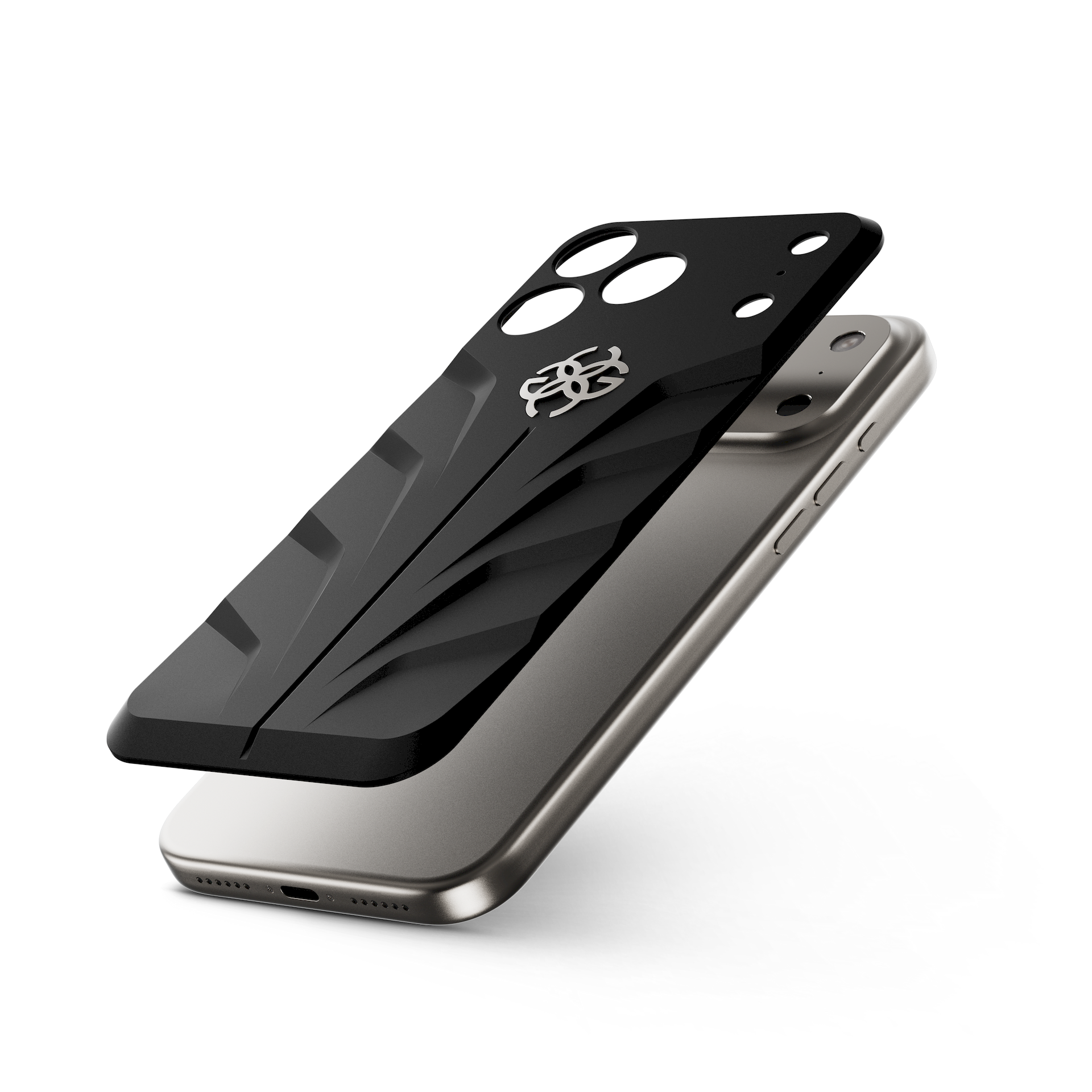 Магнитный чехол из коллекции Racing Sport Magnetic, дополнен эмблемой Golden Concept из нержавеющей стали 316L титанового цвета.