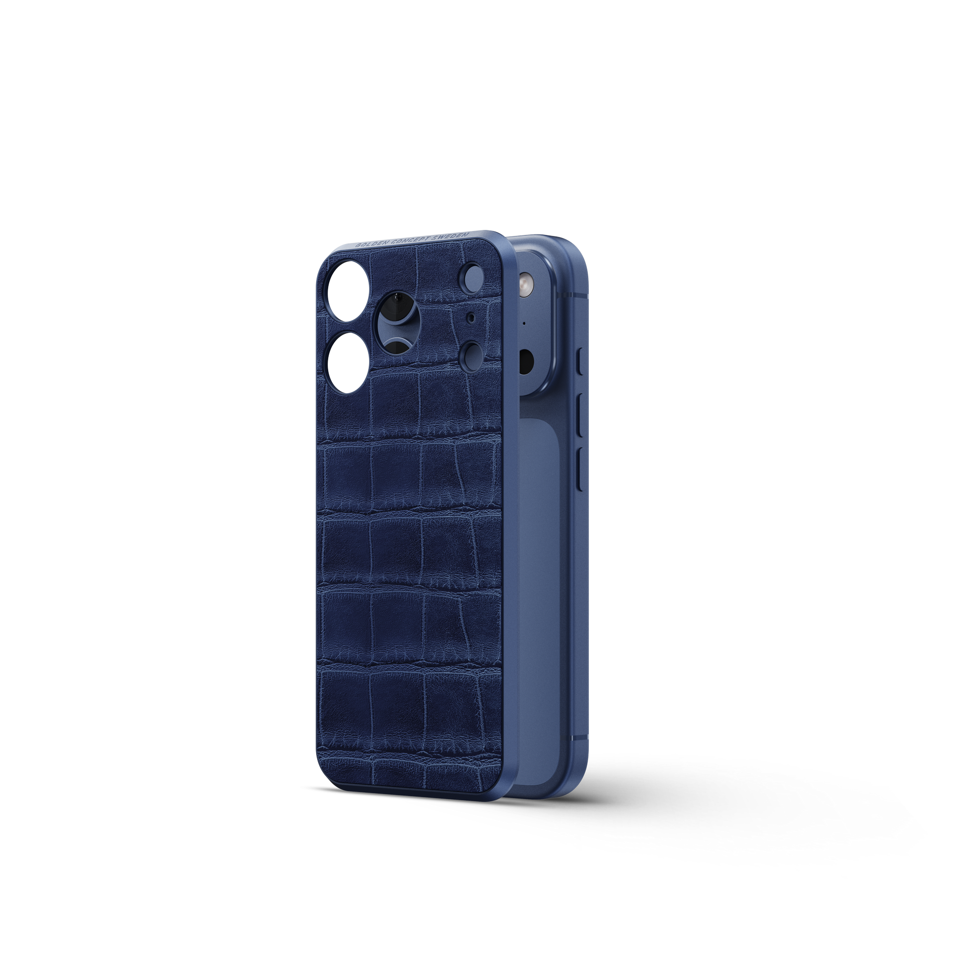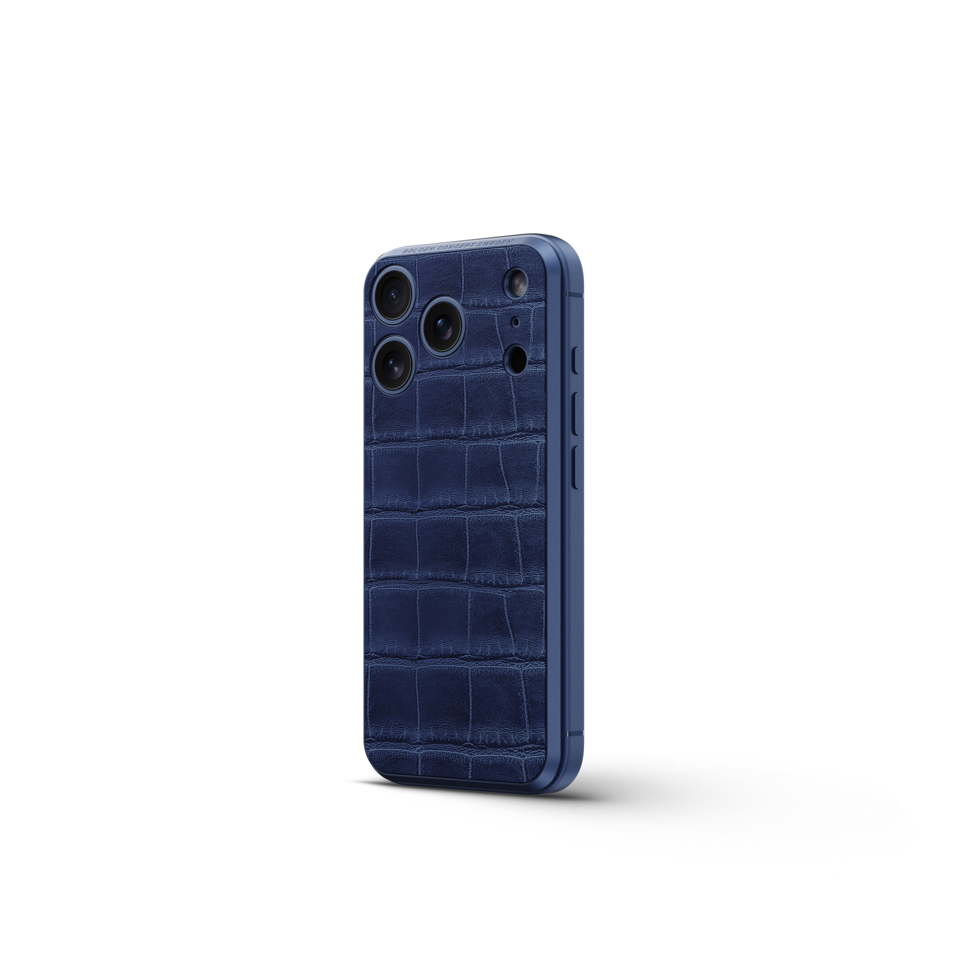 Deep Blue, создавая гармонию между чехлом и устройством. Натуральная тисненная кожа под крокодила придаёт индивидуальность при этом сохраняя тонкий профиль iPhone.